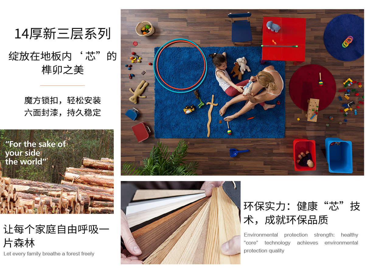 14厚新三层系列地板,执行严苛的欧洲木地板标准,打造三层实木地板上乘之作。多种款式,多样花纹,铺就一片时尚个性的快乐天地。在现代品味生活中,为家居添上浓厚的异域色彩,为实现马可波罗至美家居的理想增添助力。