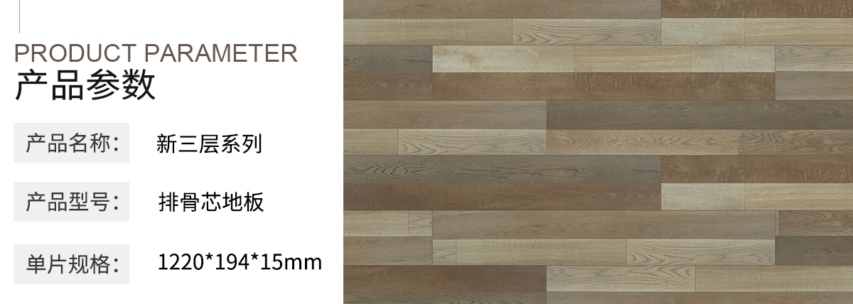 新三层排骨芯系列地板,执行严苛的欧洲木地板标准,打造三层实木地板上乘之作。多种款式,多样花纹,铺就一片时尚个性的快乐天地。在现代品味生活中,为家居添上浓厚的异域色彩,为实现马可波罗至美家居的理想增添助力。