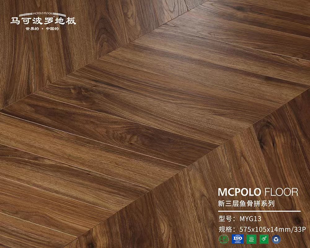 新三层同色人字鱼骨拼系列,执行严苛的欧洲木地板标准,实现了“热天不起拱、冷天不扒缝”。多种款式,多样花纹,铺就一片时尚个性的快乐天地。在现代品味生活中,为家居添上浓厚的异域色彩,为实现马可波罗至美家居的理想增添助力。
